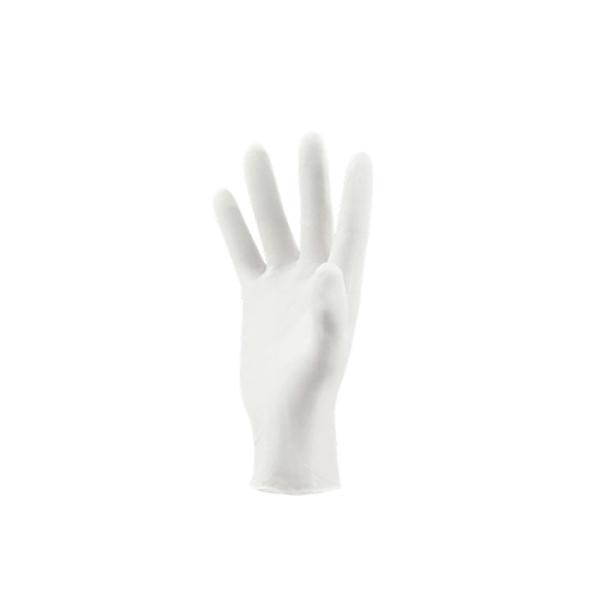 10-Count Nitrile Disposable Gloves in bag. Lightly powdered for easy on and off. Rolled cuff. Reversible style fit. Light blue. Textured for added grip. Great for working with oils and solvents.